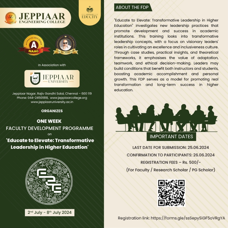 In the ever-evolving landscape of education, institutions that aim to provide innovative, affordable, and globally relevant learning opportunities stand out. Jeppiaar University, established in 2022 in Chennai, leads the way. The university is not just a recent addition to the education sector but is an extension of the visionary journey initiated by the late Dr. Jeppiaar, through the Jeppiaar Educational Trust.