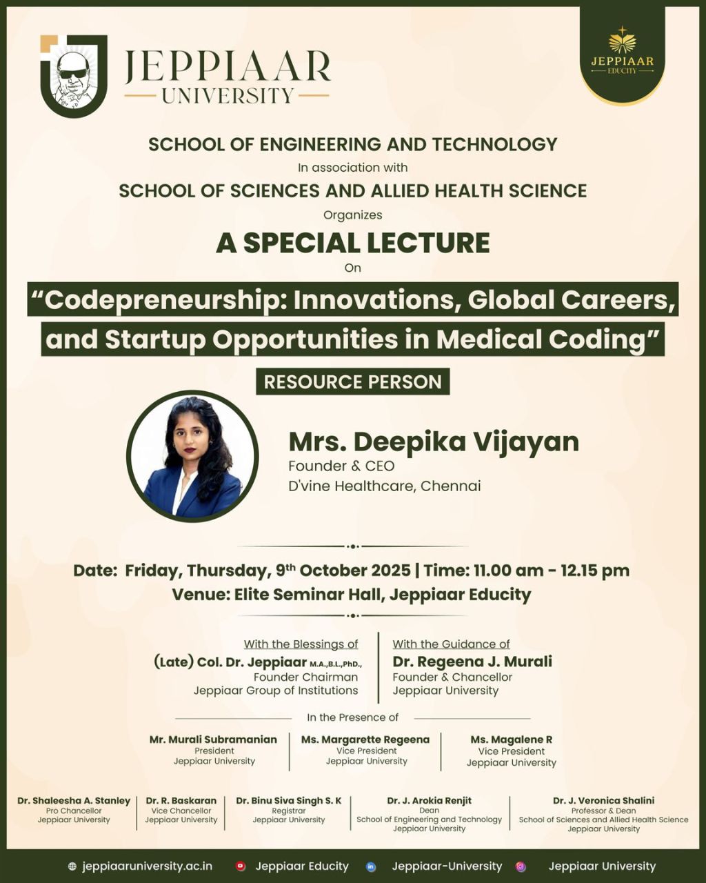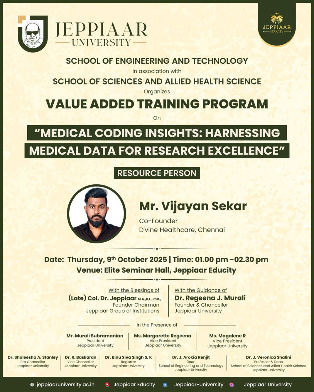 on 25.09.2025 (Thursday) – 9 am at Jeppiaar Educity (Chamber – 1).