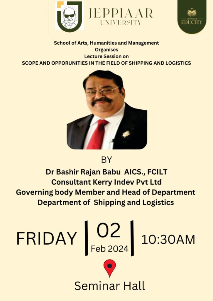 School of Arts, Humanities and Management Organises Lecture Session on Scope And Opporunities in the Field of Shipping and Logistics by