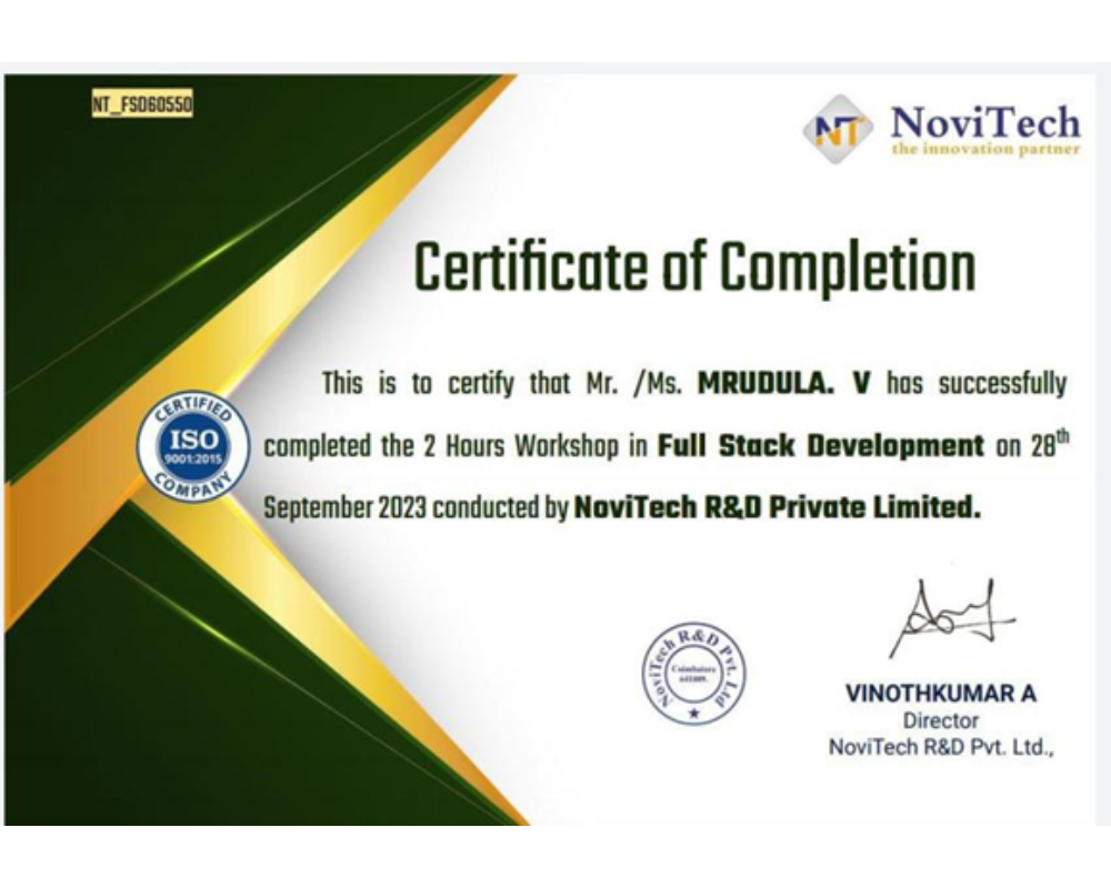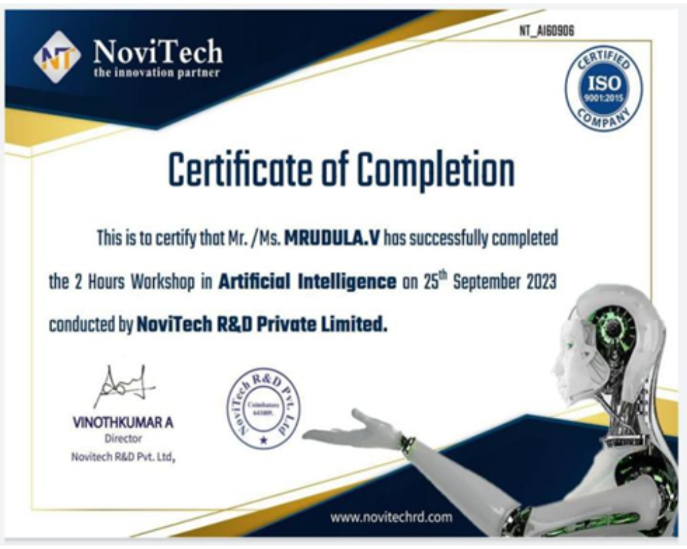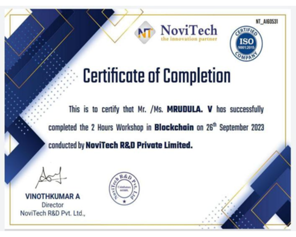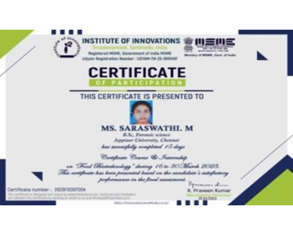 SATHYA K AND JAYASURYA S – I B.Sc. FORENSIC SCIENCE ATTENDED THREE DAYS INTERNATIONAL LEVEL WORKSHOP ON UNDERWATER FORENSIC INVESTIGATION ON (01/12/2023-03/12/2023) AT APPLIED FORENSIC RESEARCH SCIENCES.