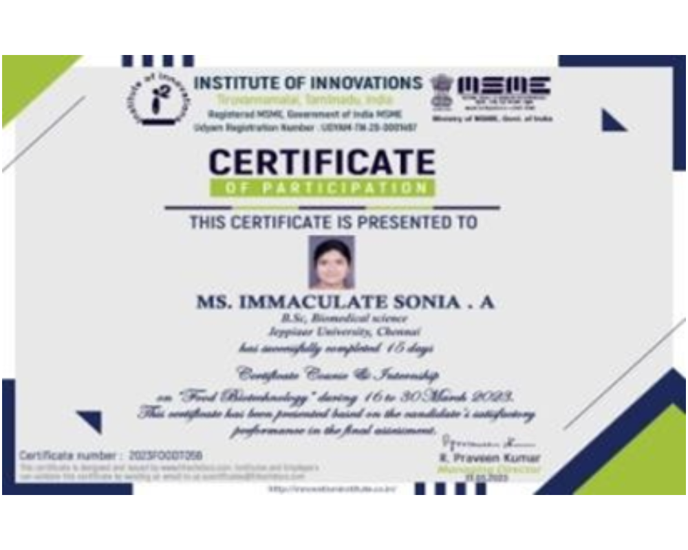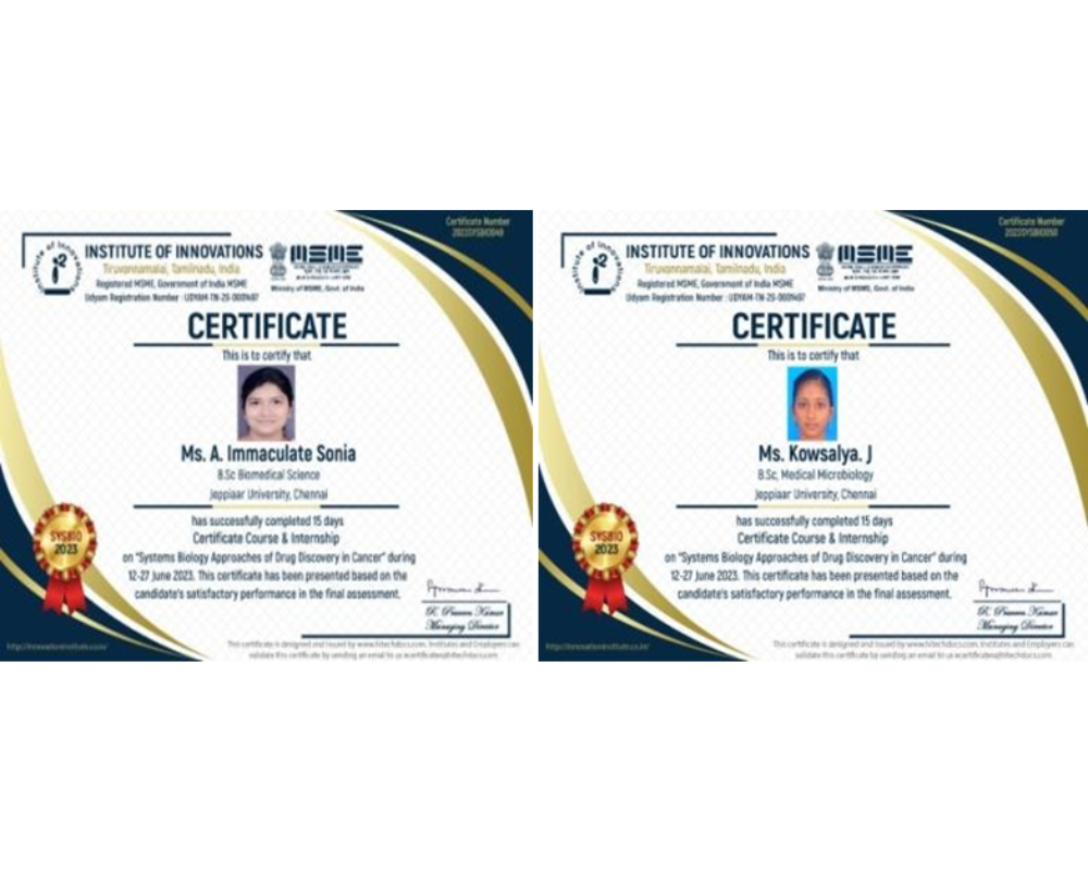 B.Sc. Biomedical Science, B.Sc. Medical Microbiology Students Participated Internship on “Drug Discovery in Cancer “during 12-27 June 2023