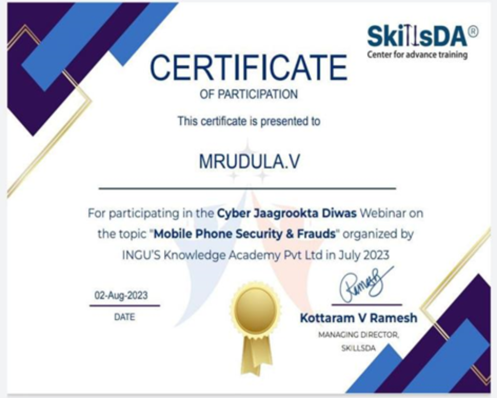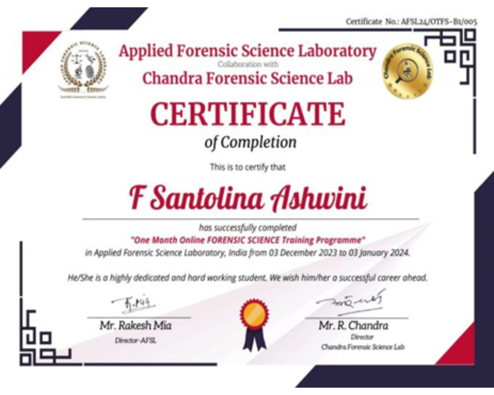 I year B.Sc. Forensic Science students attended one-month online training program in Forensic Science at Applied Forensic Science Laboratory from the month of December 2023 to January 2024.