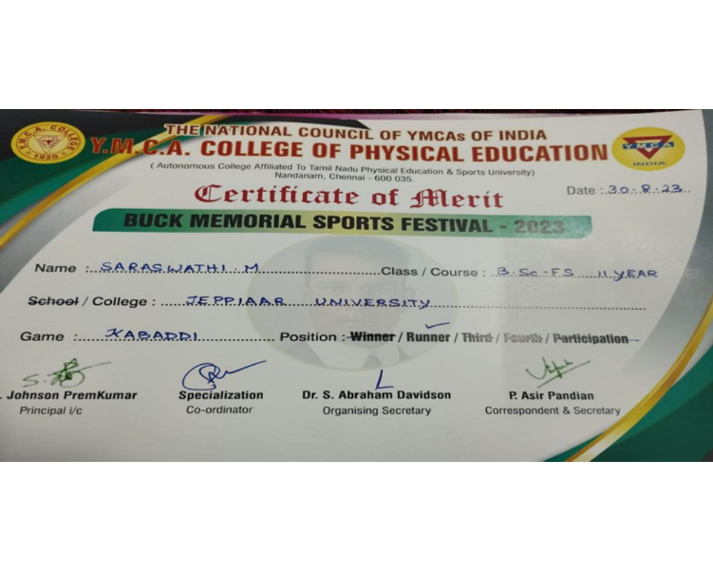Ist place at Maramalainagar, chennai, Invitation match,29/7/2023-31/7/2023 - ABISHEK KRISHNAN T – I BSC COMPUTER SCIENCE